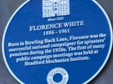 Florence Wright worked tirelessly through the 1930's and 1940's helping to lower the pension age for unmarried women. You can find her plaque outside the Bradford Mechanics Institute Library.